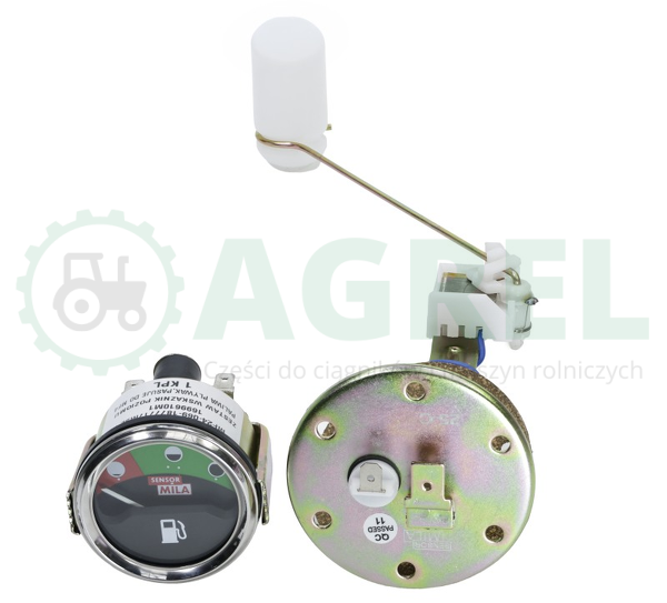 Zestaw wskaźnika poziomu paliwa z czujnikiem pływakowym przeznaczony do kontroli ilości paliwa w zbiorniku ciągnika.